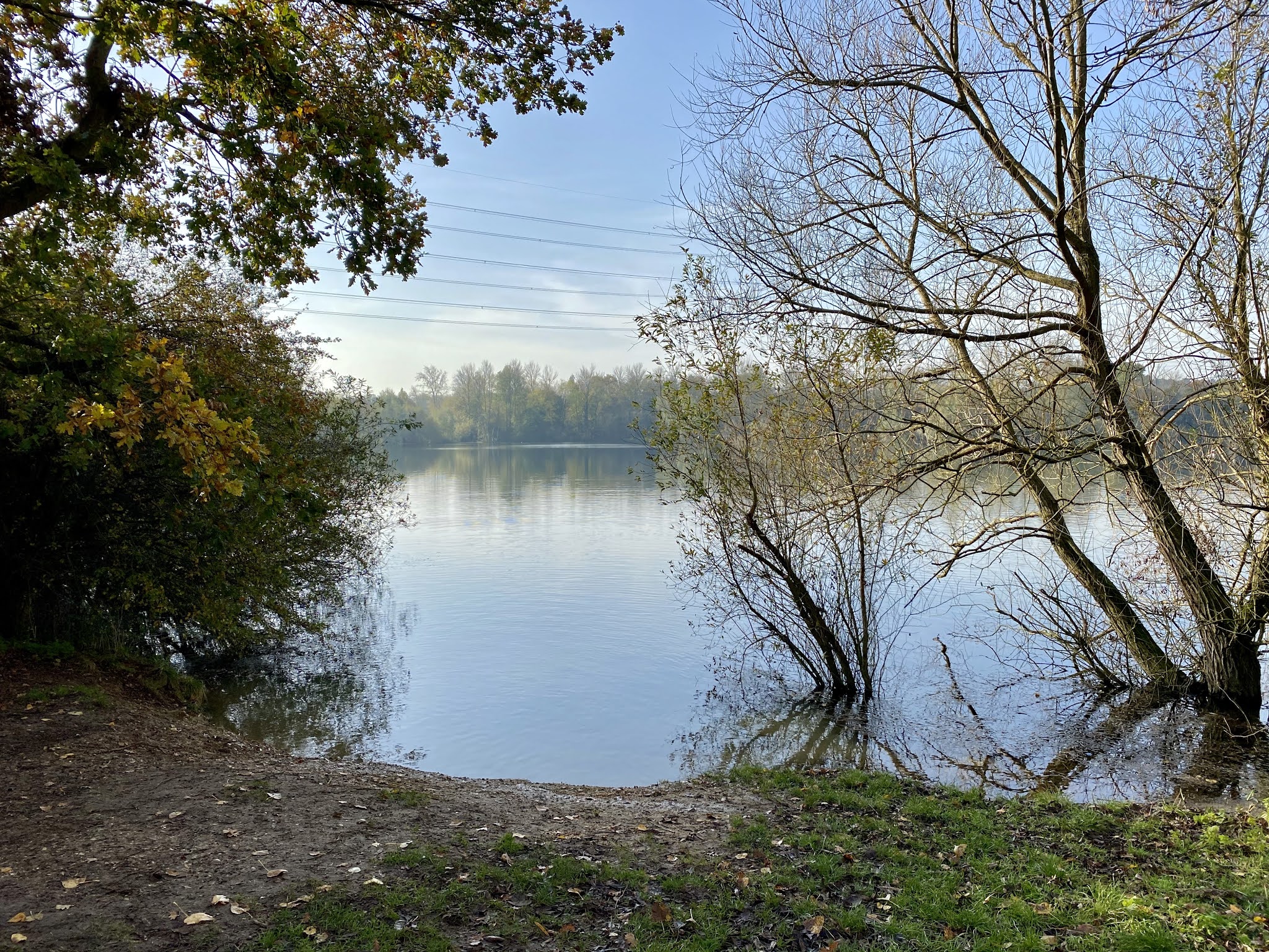 As I didn't take any photos today, here is a bit of local industrial heritage from our walk on Saturday. These little narrow gauge railway tracks were used by carts bringing sand from local quarries to the canal so that they could be loaded on to barges. Sand was a big industry here, and there are still working sand quarries though many are no longer in use. The lake in the photo below is actually manmade, and was originally a disused pit which has been turned into a waterside park. Another old quarry is often used as a movie and TV film set, and a three mile section of narrow gauge track is now run as a heritage railway.